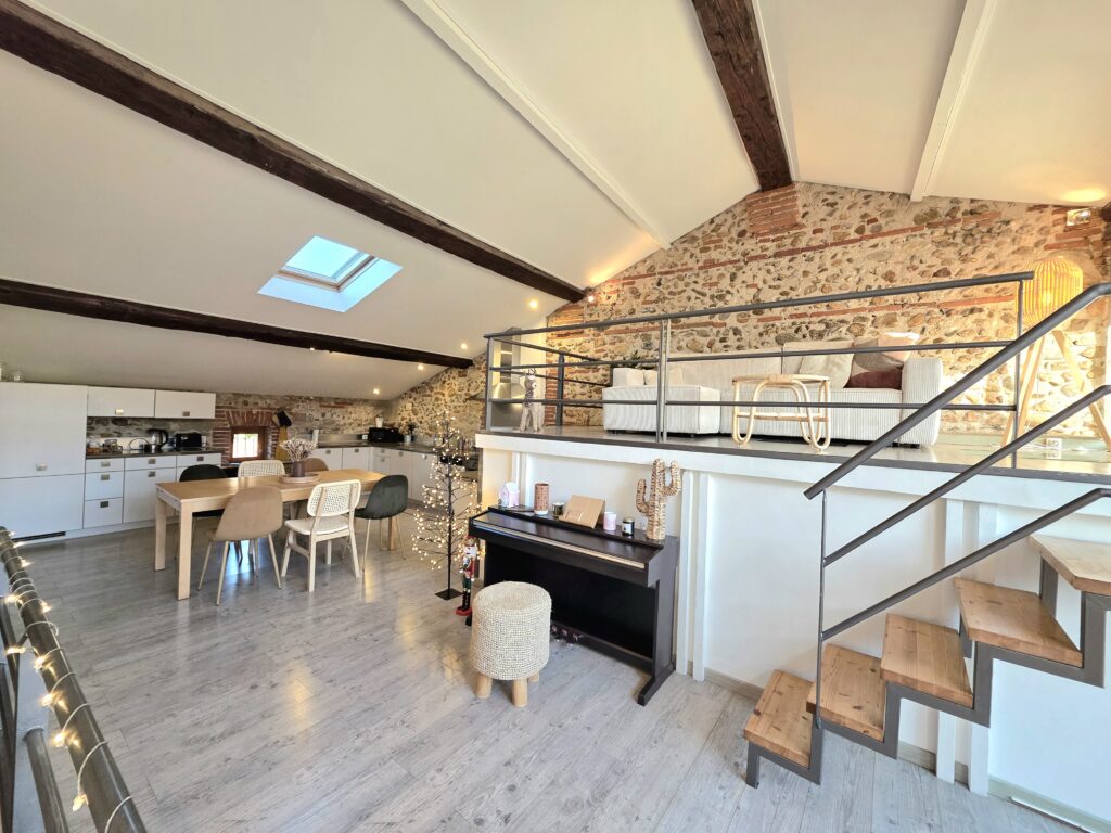 Ancienne cave réhabilitée avec caractère, offrant volumes généreux et atmosphère unique aux portes de Perpignan.