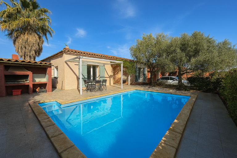 Maison au caractère méditerranéen avec piscine, parfaite pour réunir famille et amis dans une atmosphère chaleureuse et conviviale.