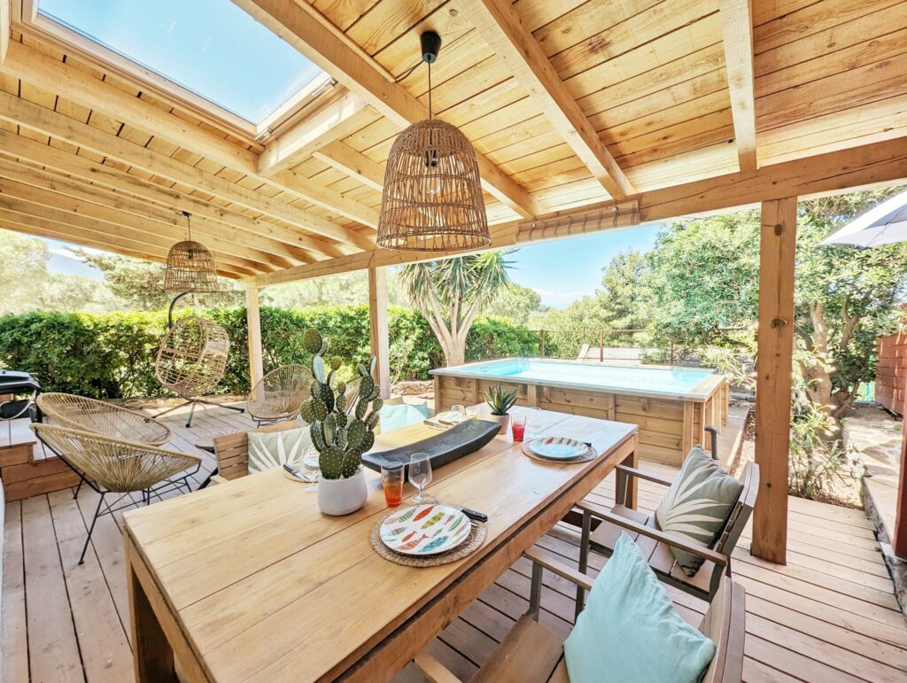 Avec petite piscine privative parfaite pour se rafraîchir, 3 suites confortables et plusieurs terrasses sans vis-à-vis.
